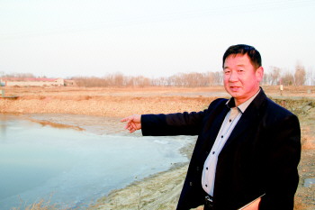 张延令向记者展示他的养殖池塘。 本报记者 张婧婧 摄