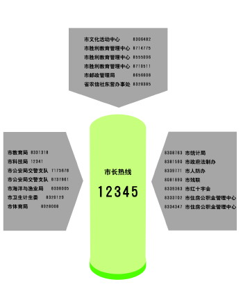 近日,东营市委办公室、市政府办公室下发了《关于加快市级民生热线资源整合工作的通知》(以下简称《通知》),决定依托12345市长公开电话,整合市级民生热线资源,确保东营市民生热线服务平台于2015年1月1日起开通。这就意味着,今后老百姓遇到大多数民生问题,只需拨打一个号码12345就行了。
