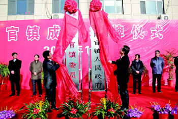 12月13日,陈官镇举行撤乡设镇仪式,广饶县委书记田和友和县长霰景亮共同为陈官镇揭牌。 本报记者 李玉亮 摄