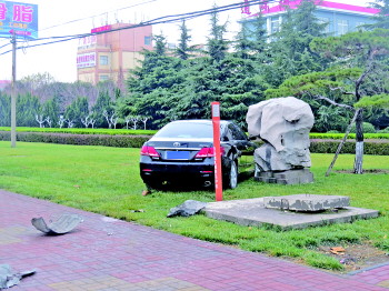 12日上午,广饶县孙武路西侧公路,一辆黑色轿车因驾驶员疲劳驾驶导致操作失控撞向路边人行道,随后冲入绿化带,所幸没有人员伤亡。民警提醒广大司机朋友一定要遵守交通法规,拒绝疲劳驾驶。 本报记者 王超 通讯员 周永强 摄影报道