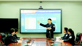 垦利县公安局民警正在学习讨论社区智能“云”防控平台的应用。(图片由垦利县公安局提供)