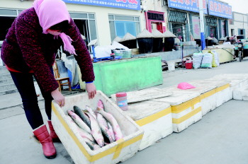 在广利港码头卖其他水产品的王女士告诉记者,1月中上旬的时候,广利港码头上经常停着前来批发梭鱼的皮卡车,有时候一辆车拉不了,得三四辆在这里排队等着。“我家的船出海一次捕捞了5000斤梭鱼。”