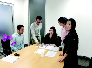 张奥娜(中间签字者)和她在澳大利亚的行政团队。(资料片)