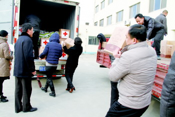在新春佳节即将来临之际,1月28日,东营市红十字会利用社会的捐款为全市的困难群众购买了米、面、油,这些价值10万元的物资将于近期发放到全市的困难群众家里。