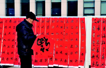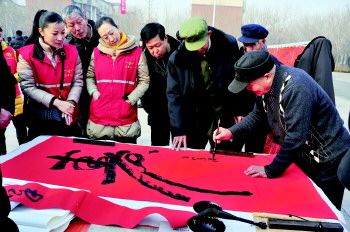 社区书法家为居民写字送福。