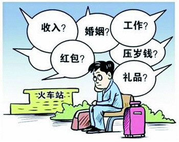 临近春节,在外漂泊的年轻人将踏上归乡的旅程。对不少人而言,“回家”既让人感到温暖,也让人很有压力,开始在过年“回家”与“不回家”之间徘徊着。回家过年是传统,中国人讲究全家团圆,但不回家也有理由,比如回家就会被问及若干难以招架的问题,没对象的催相亲,有对象的催成婚,结了婚的催生娃……对有些人来说,传承了几千年的中华传统“阖家团圆”如今却成了甜蜜的负担。