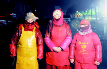 “腊月二十八停工,除夕当天坐大巴回老家,能赶上年夜饭,现在逛街的人多了,生意好,能多干一天是一天。”提到春节,老罗说,出来打拼就是为了赚更多的钱回家,“咋能不想家哩,两个娃娃在家,老人看着,一年就春节见一面。”今年她们几个的生意都不大好,“一天能挣100多块钱吧,希望明年生意能好一点。挣了钱,寄回家,给留守在老家的小儿子买礼物。”提到孩子,在寒夜里包裹笨重的她们,眼睛里泛着亮光。