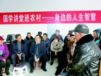 为推进乡村文明建设,近日,东营市畜牧局邀请山东财经大学王蔚教授,到帮扶村垦利县黄河口镇五县村开展国学讲堂进农村活动。王蔚教授坐在马扎上为农民朋友开展了一场别开生面的《论语》专题讲座,让农民朋友在拉家常中享受文化大餐,在家门口感受到传统文化上的魅力。