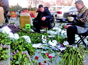 记者采访了解到,很多顾客都会提前预定情人节当天的玫瑰花,由店员送花上门。东城一家花店老板告诉记者,从一个月前就有人预定鲜花,到目前为止,已经接到70余份订单。“因为情人节当天顾客多,鲜花很容易脱销,大部分人都选择提前预定,但是价格还是得看情人节当天的价格收费。”