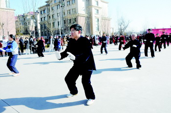 而三四十人身穿太极服,他们的42式太极拳以及太极剑让观众无不为这些老年人叫好,还有一些观众纷纷拿出手机录下视频。60岁的韩学功先生是水城太极俱乐部的一员,他告诉记者,他参加太极俱乐部两年多,俱乐部从开始的四五人,已经发展到现在的七八十人。“每天大家都自发聚到一起练习,夏天早上5点就开始练剑,可谓闻鸡起舞,通过练太极,自己的身体也变得更硬朗更健康了。”