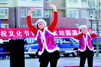 此次社区文化节吸引了各个年龄段的居民前来参加,其中银座花园舞蹈队的阿姨们最引人注目。欢快的歌曲,胸戴大红花,身穿红绸衣的“爷爷”和“奶奶”领舞,这就是在本此次赛中获得第一名的《爷爷奶奶和我们》的开场舞。