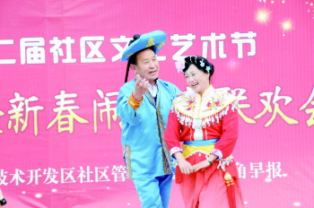2日下午3时,伴随着欢快的音乐,金水社区文艺汇演正式拉开了大幕。来自瑞景国际小区的居民闫本友和他搭档刘秀兰,身着戏服走上台来,诙谐的表演引得台下居民掌声、笑声不断。“从编排这个节目到现在,就几天时间,上台演之前,就串了两次场,没想到演出的效果还不错。”闫本友说,看到社区居民对节目的喜爱,他们演地也更有劲儿。