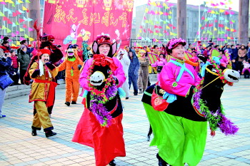3月2日,胜东社区锦华一区广场一阵锣鼓声传来,拉开了锦华物业管理公司“同一个锦华,同一个家园”元宵社火活动的序幕。活动现场中丑角、旱船、毛驴、花伞队、模特队、彩裙队、扇子队依次上场,整场秧歌阵容强大,编排新颖,笑声、喝彩声、鼓声,为元宵佳节增添了节日的喜庆和欢乐。一旁驻足观看的小区居民情不自禁,踩着节拍扭动、欢笑,呈现出一派火红的热闹景象。