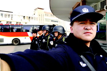 我是东营公安分局特警二大队民警张延智,春运期间,车站客流量不断增大,我们特警二大队坚守在车站,实行不间断武装巡逻,为旅客提供疏导,引导、搬运行李等服务,为往返的旅客保驾护航。