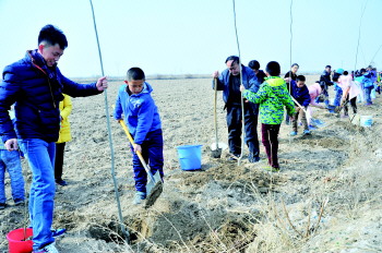 “同学们,今天种下的树苗会保存在这里,以后我们再一起回来看它们。”实验中学老师岳国庆一宣布,学生们热烈讨论起来,干劲也更足了。“这次植树活动,一是让孩子们体验劳动的不易,另一方面是想增强班级的团队凝聚力。”岳国庆说,植树活动结束后,学生们还将举行撕名牌、五人四足等比赛,促进学生们的了解和沟通。 (本报记者 王晓云)