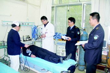 市卫生监督执法局工作人员正在对一医疗机构进行检查。 本报通讯员 摄