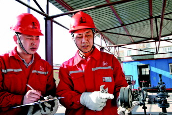 “油井套管放压井口装置”是胡海涛的一项更重要发明。“磕头机在抽油的过程中也会伴随着天然气,如果阀门关闭,里面充满气体,原油就抽不上来,但是一旦打开阀门,要释放气体少则几个小时,多则一两天,并且天然气就这么白白浪费了。”有鉴于此,胡海涛用两个多月的不断实验,终于发明出了“油井套管放压井口装置”,既可以合理的控制套压,又能将气体回收利用,并且在单位油井推广使用,增效150余万元。