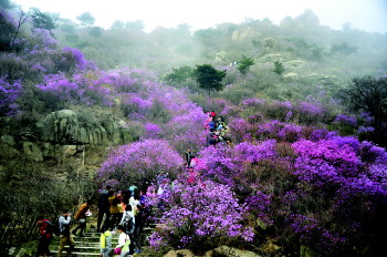 伴随着春回大地,万木竞发,黄岛杜鹃花会也拉开了帷幕。3月28日,青岛西海岸--黄岛区大珠山下锣鼓阵阵、彩旗招展、车流滚滚、人潮涌动,第十届黄岛杜鹃花会在这里盛大开幕。在漫山杜鹃花和一系列精彩活动的吸引下,花会开幕当天即有3万多名游客前往大珠山踏青休闲。