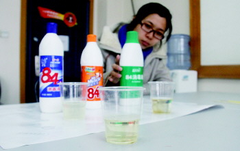 本报实验证明:是的84消毒液很有腐蚀性,建议使用时别直接上手文/本报记者孙娜娜片/本报记者郑美芹