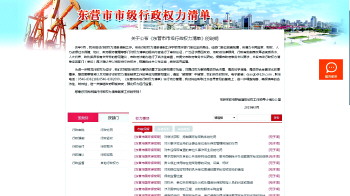 4月1日,记者登录东营市市级权力清单公示平台后看到,权力清单可以通过“按类别”或“按部门”进行查阅。其中,类别共有10个,包括行政审批、行政处罚、行政强制、行政征收、行政给付、行政裁决、行政确认、行政奖励、行政监督以及其他权力。 在市级保留的行政权力事项中,行政处罚事项最多,在3958项中占了2691项。点开行政处罚,右侧就会出现各部门关于行政处罚的各种权力,记者随意点开市财政局对私存私放财政资金或者其他公款行为的处罚后,一张行政权力基本信息表展现在眼前,权力事项编码、名称、类别、实施对象、实施依据、实施主体、承办机构、收费标准及依据等一目了然。各部门单位行政权力运行流程图也将于近期公布,方便办事群众。