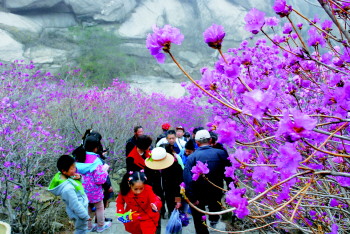 大珠山素以“谷秀、峰奇、石怪、花繁”著称于世,每年3月底4月初杜鹃花便会迎春绽放,一直持续到五一后。全面盛开时,漫山遍野,十分壮观。大珠山也因此被称为“春来飞红第一山”。今年的黄岛杜鹃花会将从3月28日一直持续到5月31日,期间景区推出一系列独具特色且富有趣味性、参与性的休闲活动:浪漫花海巡游、趣味童心小栈、七彩转转风车、益智乐园、花会美食坊,五彩风铃节、珠山庙会以及微信关注有礼、“徒步穿越”达人评选、“我拍我秀”、“珠山印记”集章等系列微旅游有奖互动活动。清明节期间吸引了大批青岛及周边游客到来。