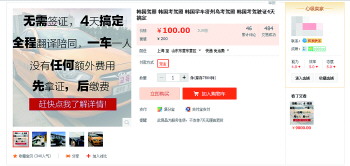 在淘宝网,有店铺打出“韩国考驾驶证4天搞定”的信息,成交记录超过1700人。 (网络截图)