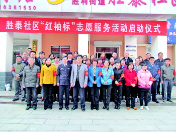 近日,胜泰社区举行胜利街道胜泰社区“红袖标”志愿服务活动启动仪式。据了解,“红袖标”志愿服务的开展能有效维护社区治安秩序,保障居民居住安全,发展壮大群防群治队伍和志愿者队伍,形成和谐稳定的良好局面。在启动仪式上,宣读了“红袖标”志愿服务活动实施方案和志愿服务者名单,并由胜利街道领导为志愿者佩戴袖标。胜利街道综治办主任陈志泉号召广大居民加入到“红袖标”的队伍中来,持久深入地发展好志愿服务活动,共同建设“平安社区”。