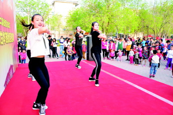 此次活动,府前社区协调社区艺术团也参与其中。活动开始前,府前社区星光艺术团的队员们早已化好妆,穿好演出服开始彩排。他们带来了舞蹈《红色娘子军》和戏曲《搞笑亲家母》。两个节目的表演者年龄段在58到66岁之间,虽然年龄大,却个个英姿飒爽,表现出了娘子军的风采。“这个节目我们仅仅彩排了半个月,如果时间再长点,效果会更好。”艺术团团长郭金玲说,演出的服装、头饰都是队员从网上购买的。整个艺术团中年龄最大的68岁,最小的35岁。“社区工作站给我们提供了场地,让我们老有所乐,强健了身体。我们排练的时间一般是在周一、周三、周五上午,年轻的队员则要晚上加班排练。”郭金玲说。此外,活动现场还有魔术表演,舞蹈《小苹果》、《倍儿爽》,歌曲《365个祝福》等,现场掌声不断。