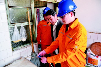 随后,海蓬志愿者来到住在府前小区46号楼一单元的崔焕生老人家中,用仪器检测他们家中的电路情况。志愿者们用万能表检测电流、电压、电阻是否通断,检查开关、插座有无问题……不放过任何有问题线路,“府前小区属于老旧小区,电路容易发生老化,我们要仔细检查一下才放心。”说完后,海蓬志愿者们拿起检测工具到厨房继续检测。当他们发现问题后,及时反馈给崔先生,并立刻对问题线路进行维修。崔焕生告诉记者,他自己上了年纪,家中就只有他和老伴,“遇到用电问题时,自己也不知道怎么修,真的很感谢志愿者帮忙检测线路。”崔焕生说。