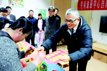近日,胜利油田中心医院荣誉教授、台湾慈济医院麻醉学教授石明煌在中心医院学术交流期间,专程到该院儿康康复区看望正在接受康复治疗的残障儿童,并为5名家庭困难的儿童捐赠了25000元善款,表达了自己的一片爱心。