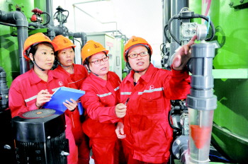 崔尚红在日常工作中不断积累经验,对于自己不懂的问题,就一个劲儿地问老师傅,她的努力没有白费,在很短的时间内就熟练地掌握了岗位操作要领。“当时为了尽快提高自己的岗位技术,哪里出了问题我就马上赶过去,虽然自己还不能解决问题,但可以在一边看有经验的师傅们是怎么说的,怎么做的。”慢慢地,站区内大大小小的机泵设备,从结构原理到性能状况,崔尚红都牢记在心里。