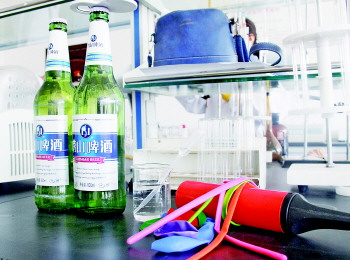 现场实验带您一睹啤酒胀气的破坏力文/本报记者孙娜娜片/本报记者郑美芹