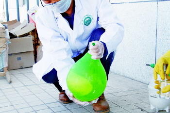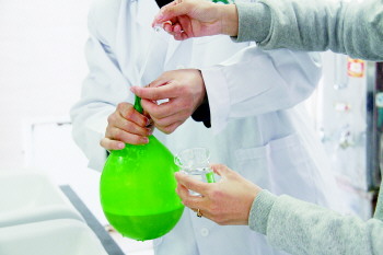 宁尚晓将啤酒倒入浇花喷壶中,然后再挤压到气球中,之后用胶头滴管将盐酸滴入气球中。宁尚晓通过摇晃气球来模拟胃部蠕动。记者看到,气球越来越鼓,能看到其中有大量的啤酒泡沫,同时空气中弥漫着的啤酒香味也越来越浓烈。在不加液的时候,宁尚晓始终保持气球嘴部闭合,模拟声门咽部闭合的状态。