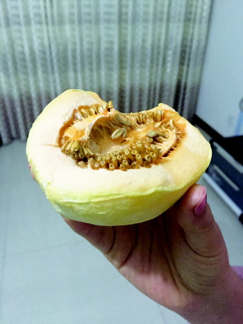 杨女士只吃了半个甜瓜便呕吐不止,图为剩下的一半甜瓜。