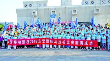 为了让东营跑友在2015黄河口(东营)国际马拉松赛上展现东营的风采,东营移动公司为1500多名跑友身穿蓝色田径服,以统一的集体形象更好地宣传东营,宣传东营马拉松。