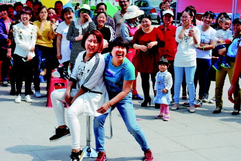 不到上午九点,太阳已经十分刺眼了,但炎热的天气没有阻挡现场居民的热情,大家风风火火地赶到广场上。活动还没正式开始,就有不少居民到组委会处询问如何参与活动。在得知只要参与就有奖品拿回家的时候,跟着奶奶来看热闹的豆豆高兴地拍着手说,“如果能有奖品,我可以当‘五一’礼物送给奶奶了。”听了小孙子的话,奶奶欣慰地摸了摸他的头。