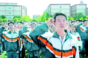 东营市一中18岁的学生在成人礼上宣誓。 本报记者 段学虎 摄