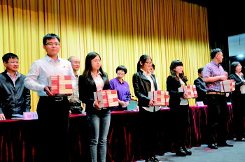 大学生村官代表领到了赠送的图书。