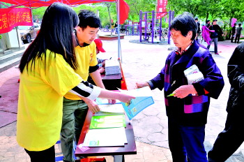 活动现场不断有居民抱着废旧物品来到“环保市场”,这是中山社区和东营市慧众社区工作服务中心联合组织的爱心活动。居民带着家中的废旧物品来到现场,登记、称重……