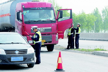 本报5月11日讯(见习记者 王迪) 为维护良好的道路交通秩序,预防重特大道路交通事故的发生。5月7日,广饶县公安局交通管理大队联合东营市交通局、市交警支队机动大队、广饶县交通局在S231与S319交叉路口设置临时检查站,严查各类交通违法行为。