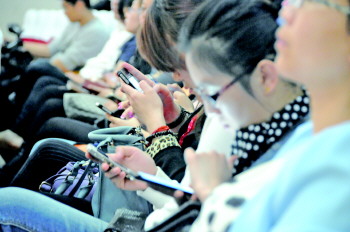 不少年轻人沦为“低头族”。 本报记者 段学虎 摄