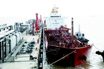 一艘外轮缓缓停靠在东营港的码头。 本报记者 任小杰 摄