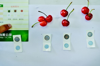 实验样品:依然是上述3种樱桃。农药速测卡来自广州绿洲生化科技股份有限公司。