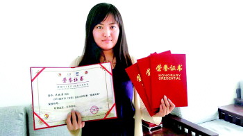 工作人员展示荣誉证书。 本报记者 李沙娜 摄