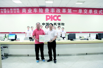 5月29日晚,市民秦先生来到人保财险东营市分公司出单大厅,购买商业车险。他的保单也成为此次新的商业车险条款费率改革后的东营市第一单。