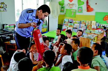 花官派出所组织民警深入辖区幼儿园科普消防知识。