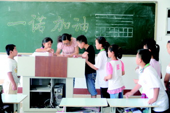 3日上午,一诺的同学们共同奉献爱心帮一诺筹集医疗费。 本报记者 任小杰 摄