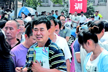 10日,2015年东营市中考开考,市一中考点外,“陪考大军”人山人海。不少家长表示,与高考相比,中考应该更加重视,“能考一所好的高中才能考一所好的大学”。也有老师认为,家长陪考有可能造成孩子的压力,“毕竟孩子逐渐长大了,家长该放手的时候应该放手。” 本报记者 段学虎 摄
