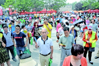 市一中考点外,陪考的家长让现场变得十分热闹。 本报记者 段学虎 摄