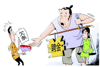 陕西小伙陈森付不起16万元聘金,准丈母娘拉着女儿梁婷去堕胎,由此引发争执,还惊动民警从中调解。远在家乡的陈森父亲只得带着陈森的三个叔叔赶到福建泉州谈判。据称,按陈森家乡的规矩,这是“最豪华阵容”。然而,谈判并不顺利,宛如一场博弈。最终,陈父举债、陈森写下欠条,双方才得以订婚。聘金要不要给?给多少合理?个人有个人的说法,各地有各地的“行情”。可是,幸福的婚姻,有了高额聘金就能保障吗?